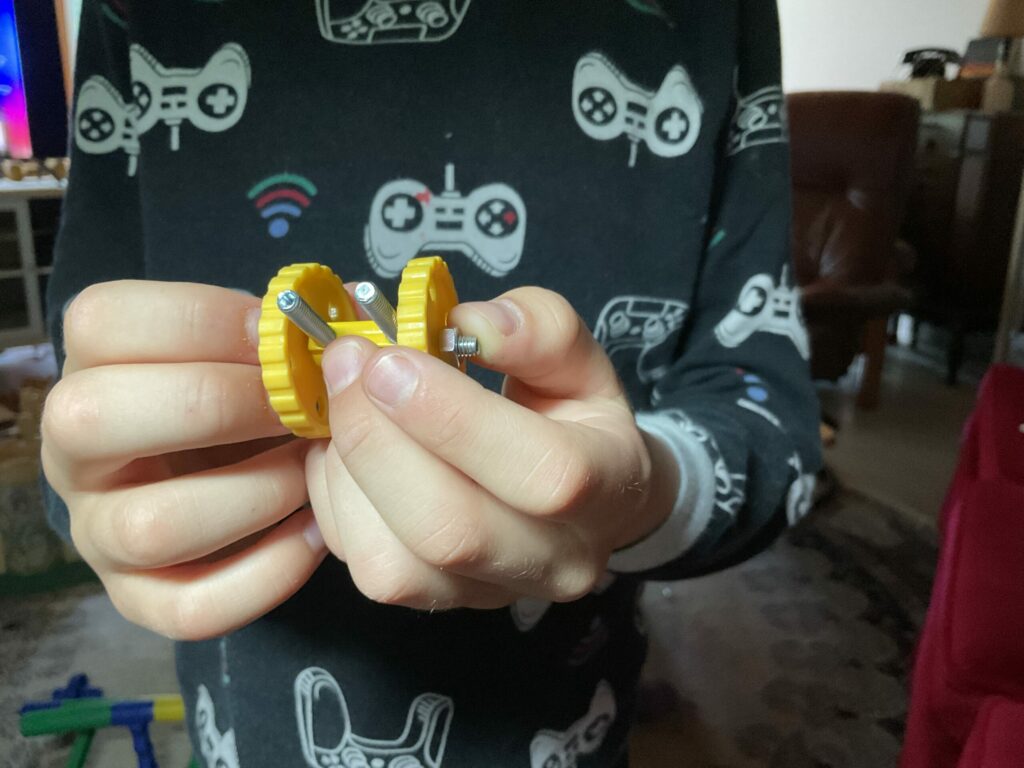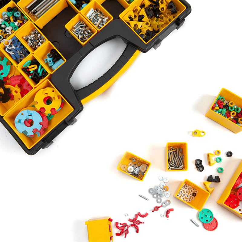 It’s a family affair! Featuring over 1000 colorful nuts, bolts and shapely bits, this kit includes enough pieces to entertain a roomful of kids, caretakers and friends.