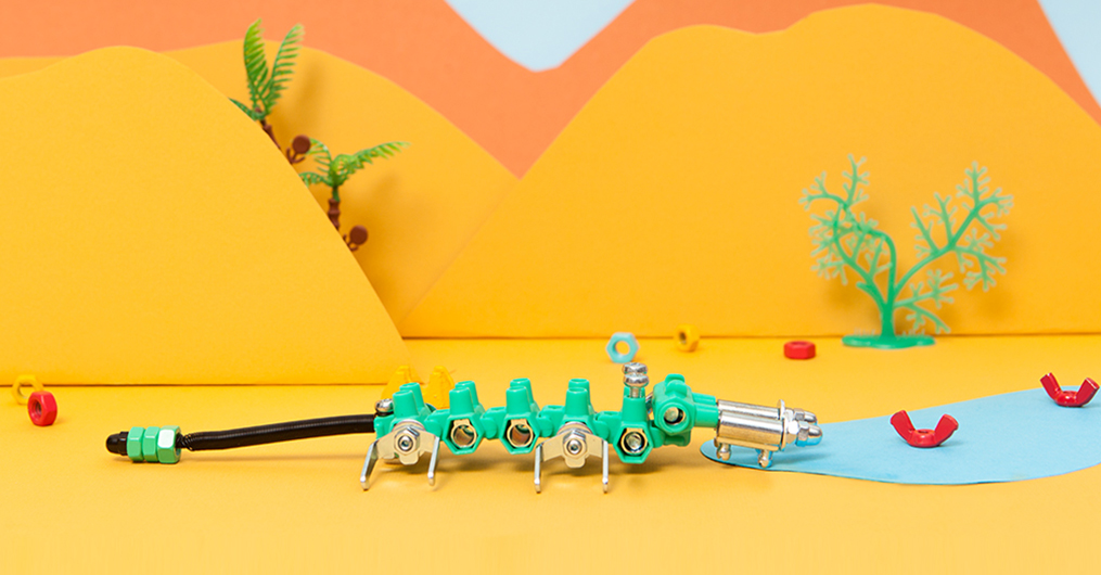 Real metal nuts, bolts, springs, proprietary connectors and colorful plastic parts.